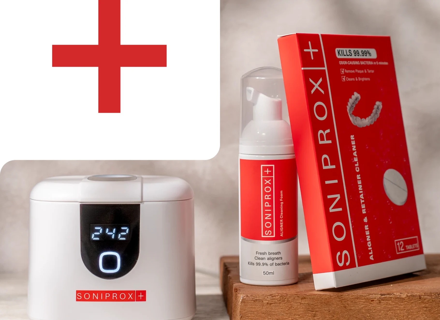Soniprox+ Box to kompletny pakiet codziennej higieny dla użytkowników nakładek ortodontycznych, retencyjnych (retainer) i protez. W jednym pudełku znajdziesz: