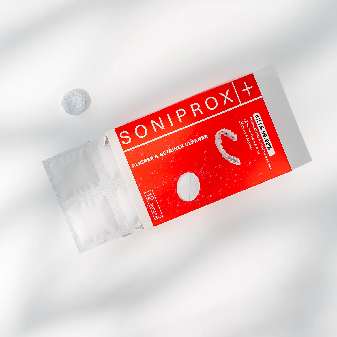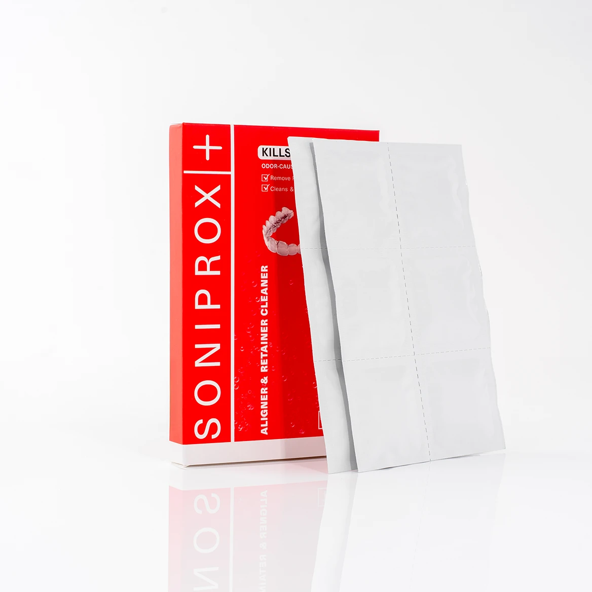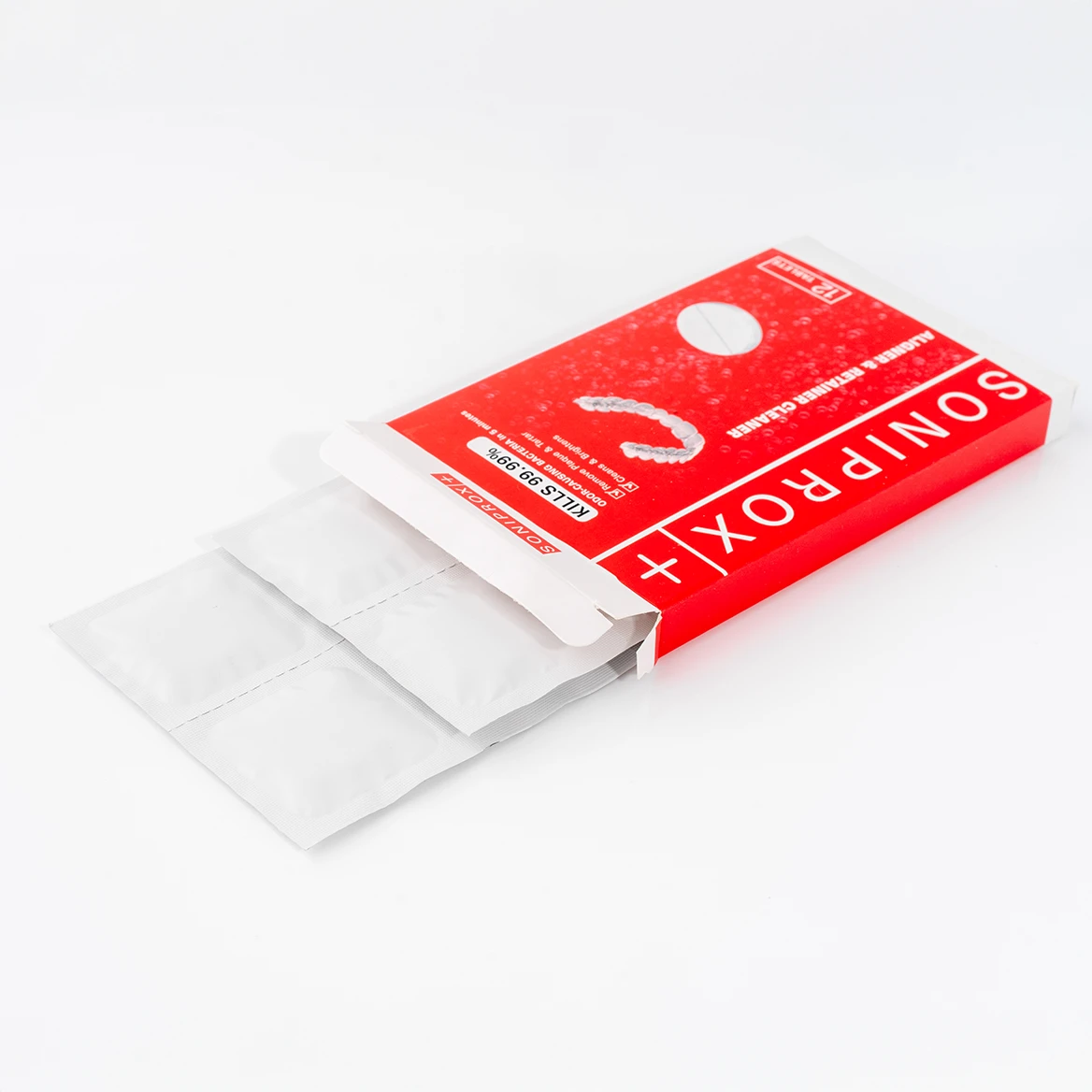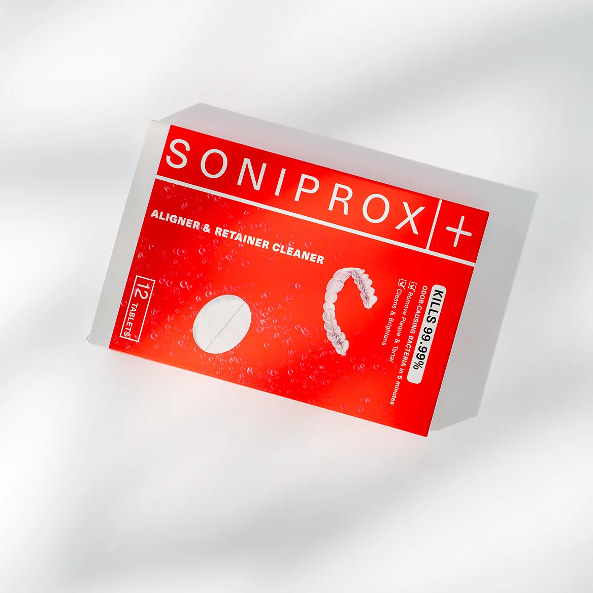 Tabletki Soniprox+ Tabs zostały opracowane z myślą o skutecznym i bezpiecznym czyszczeniu nakładek ortodontycznych, aparatów ruchomych, retainerów i protez. W połączeniu z ultradźwiękowym urządzeniem czyszczącym zapewniają pełną higienę, usuwają drobnoustroje, osady i nieprzyjemne zapachy, przywracając świeżość każdego dnia zgodnie z protokołem UHP+™.