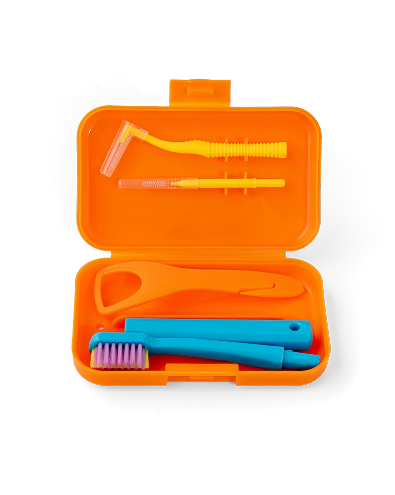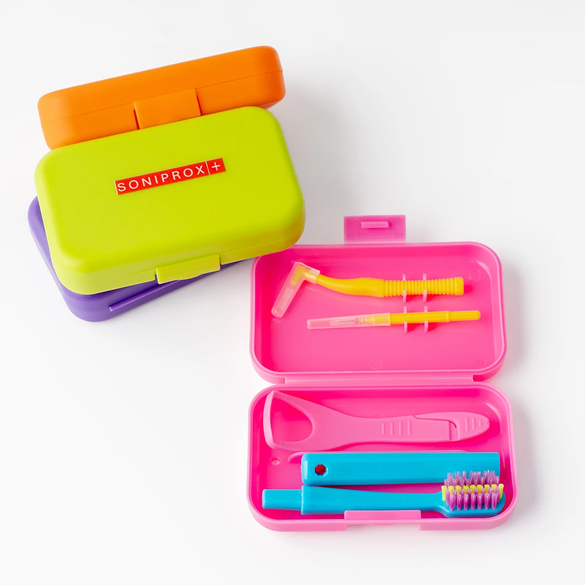 Zestaw podróżny Soniprox+ został stworzony z myślą o osobach noszących aparaty ortodontyczne i protezy, które chcą dbać o higienę bez względu na miejsce i okoliczności. Każdy element zestawu został zaprojektowany tak, aby ułatwić dokładne i delikatne czyszczenie aparatów, przestrzeni międzyzębowych oraz języka. To pełne wsparcie w codziennej higienie